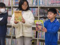 今朝の児童集会の様子です。蛸島町のご出身の方から、図書の寄贈がありました♪