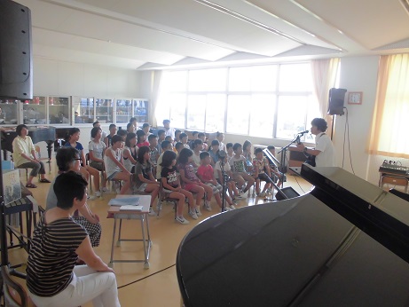 その後、スプールさんの読み聞かせ、演奏が行われました。蛸島小学校には8年前から年に1~2回、来ていただいており、今回は記念すべき第10回目の読み聞かせだったそうです!ありがとうございました。