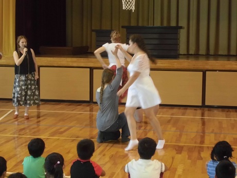 ポーランド人の女子学生6名が来校し、自己紹介やポーランドの文化紹介の後、ポーランドのダンスを披露していただきました。子どもたちも教わりながら、次第に覚え、一緒に楽しくダンスを踊ることができました。
