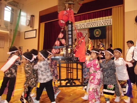 子どもたちはお祭りの衣装に着替え、本番さながらにリハーサルを行いました。