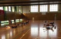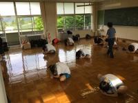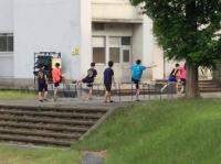 学校が再開して4日目、いよいよ今日からは部活動も再開です。活動日の関係で明日以降がスタートという部もありますが、放課後校内各所で生徒たちの元気な姿を目にすることができました。今日はどこの部でも、まずはしっかりと体作りということで基礎トレーニングが多かったように思います。ライフル射撃部では、感染防止のために遮蔽シートを手作りして、練習に取り組んでいました。