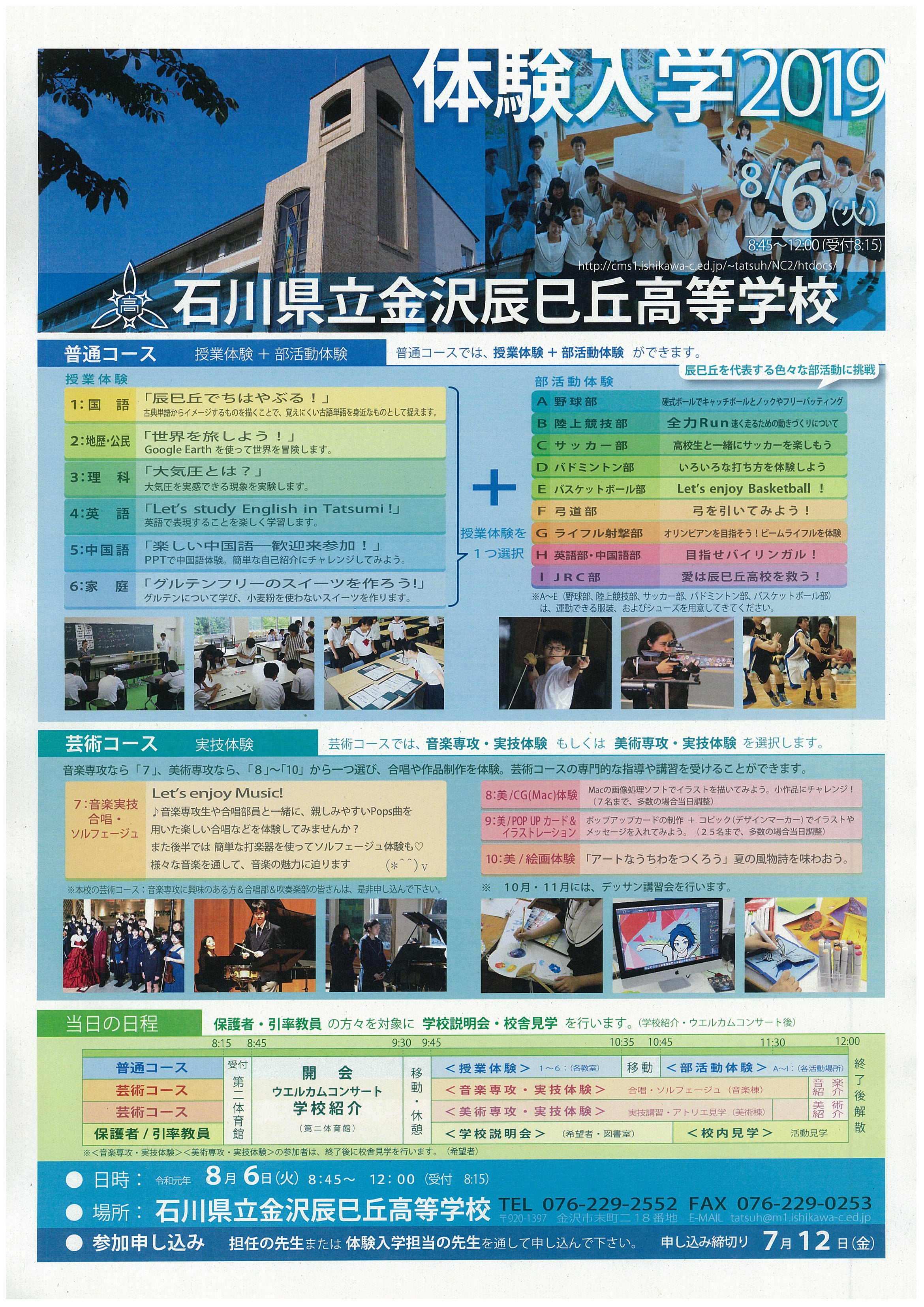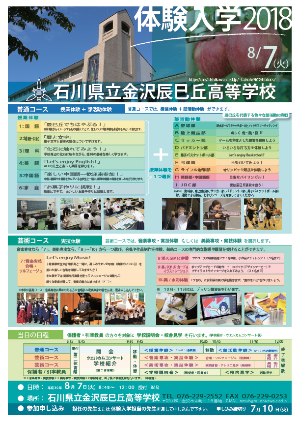 石川県立金沢辰巳丘高等学校 体験入学係(総務課)