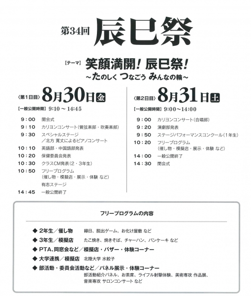 9月1日(土)9:00〜14:00(一般公開)