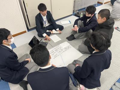 少人数のグループに分かれた生徒たちは、ボランティア活動などで地域に貢献している講師の方々と交流し、さまざまなお話をうかがいました。