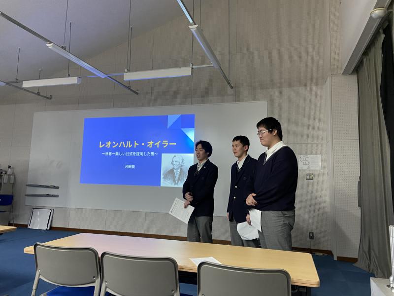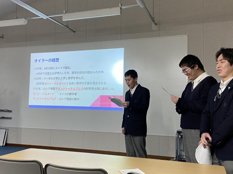 昨日、本校3年生の数学演習で行ってきた、数学偉人調べ学習の発表会を行いました。