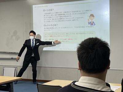 SMBCコンシューマーファイナンス株式会社の方に講師をお願いし、「成年年齢引き上げ」を踏まえて、必要な金融知識や注意点を、またローン・クレジットの仕組みや利用する際の留意点、若い世代が巻き込まれやすいカードトラブル等についても、わかりやすくレクチャーいただきました。