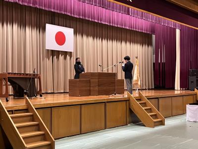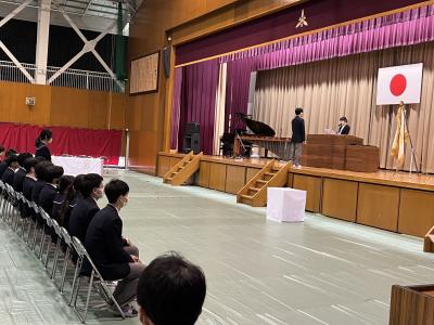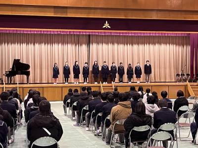 終業式では卒業式から復活したピアノ伴奏での「大きな明日」を斉唱し、学校長からの「学ぶこと」の意義・そこから培われるものについてのお話から、春休みを有効に過ごしてくれるものと期待します。