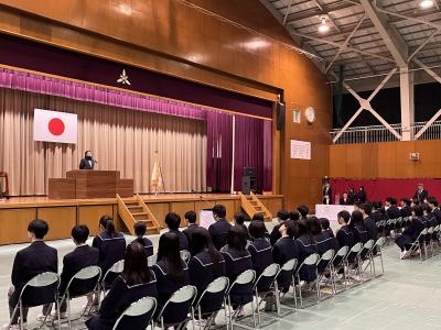 この時期には珍しく、朝から雪がヒラヒラと舞う中、本校は3学期の終業式を迎えました。