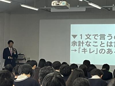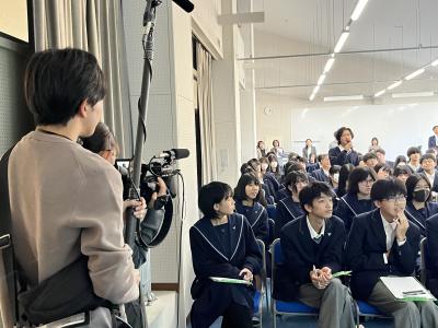 NHK金沢放送局の浅野達朗アナウンサーを講師に、「わかりやすく伝えるために」というテーマの講座を実施し、声の出し方や話し方のコツを学びました。この知識を探究活動の発表に活かしていきたいと思います。