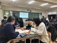 12月17日(水) 教職員全員で学校をよりよくするための話し合いを行いました。グループに分かれて活発に意見を出し合い、終始笑顔と笑い声があふれる中で、先生同士の仲の良さが伝わる和やかな雰囲気の研修となりました。