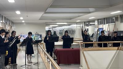 音楽専攻生はトーンチャイムで「Amazing Grace」と「ジングルベル」を清らかなハーモニーで演奏しました。