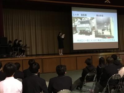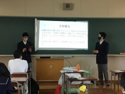 11月3日(金)1年生は防災減災についてクラス発表を行いました。