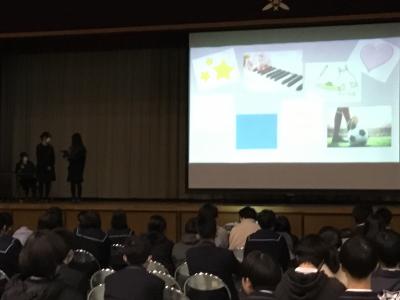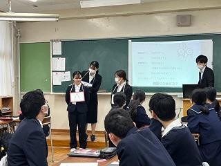 12月19日(火)1・2年「総合的な探究の時間」合同発表会がありました。発表に当たったグループはそれぞれ、調べたことをそれぞれ探究し、聴いている皆さんに伝わるよう堂々と話していました。