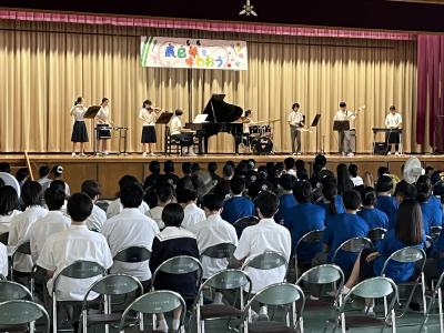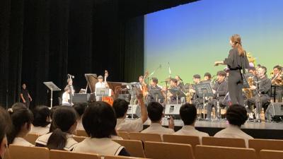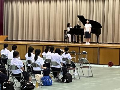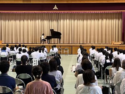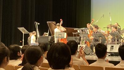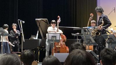 アンコールでは管弦楽・吹奏楽部のピアノ担当の2年生遠衛さんとウッドベース担当の1年生中谷さんが一緒に演奏することができ、心ゆくまでプロとの共演を楽しみました。このような機会を設けていただいたことに心より感謝申し上げます。