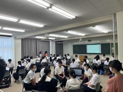 本校では、夏季休業に入って間もない7月25日(火)の午前中に、中学生体験入学を行いました。連日とても暑い日が続いており、当日も熱中症警戒アラートが出ていましたが、中学生の皆さんは元気よく各体験に参加してくれました。
