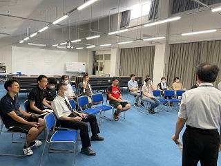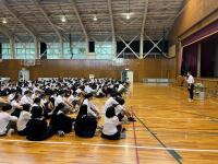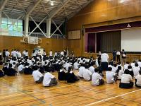 9月1日、暑さが少しだけやわらぐ中、体育館でたくさんの扇風機をフル稼働させて始業式等を実施しました。