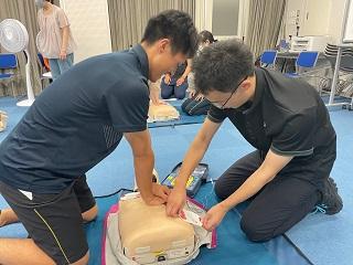 8月8日(火)、日本赤十字社石川県支部より2名の指導員の方に来ていただき、AEDを用いた心肺蘇生法の練習をしました。