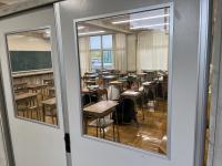 雨天のため避難場所を体育館に変更しましたが、校舎の改修工事のため通行できない階段もあったため避難完了までの時間は4分45秒であり、グラウンドへ避難集合した昨年度とほぼ同じ時間を要しました。