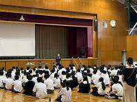 以前、学校歯科医の扇谷先生に教えていただいたお話を伝え、年に1度の歯科受診とむし歯の疑いがあった人はすぐに歯科医の診察を受けてほしいということを伝えました。