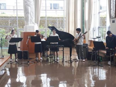 管弦楽・吹奏楽部は「人生のメリーゴーランド ジャズVer.」を、合唱部は「しあわせよカタツムリにのって」と「世界はあなたに笑いかけてる」の2曲を演奏しました。