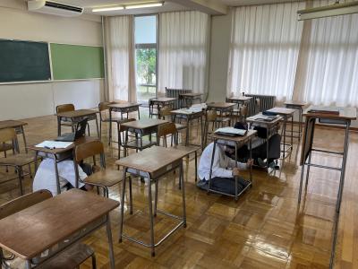 じめじめした湿度の高い日が続く中、生徒たちは明日からの試験に向けて、黙々と勉強に取り組んでいます。その合間を縫って、7月に行われる体験入学のパンフレットに載せる写真を撮った様子です。