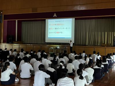 非行防止教室では、県教委の方から、少年非行の中でも「いじめ」に重点を置いた話がありました。軽い気持ちでのネットへの書込みも「ごめんなさい」では済まされない状況に発展すると注意が促されました。