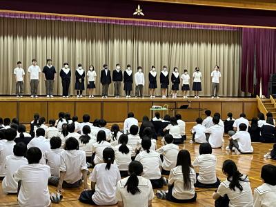 その後、1学期中に行われた各種大会・催しで表彰を受けた生徒の紹介があり、活躍に対して全校生徒で栄誉を称えました。