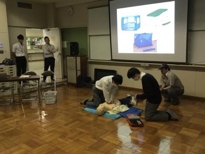 また、実際に「心肺蘇生」や「AED」も体験させていただき、使用方法を学ぶことができました。