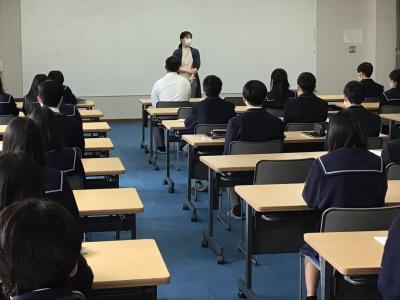 校長先生は、自分で適切に判断し行動する力=「自律」と、自分自身で生きていく力=「自立」の大切さについて、生徒の興味関心ある話題を基にわかりやすく話してくださいました。