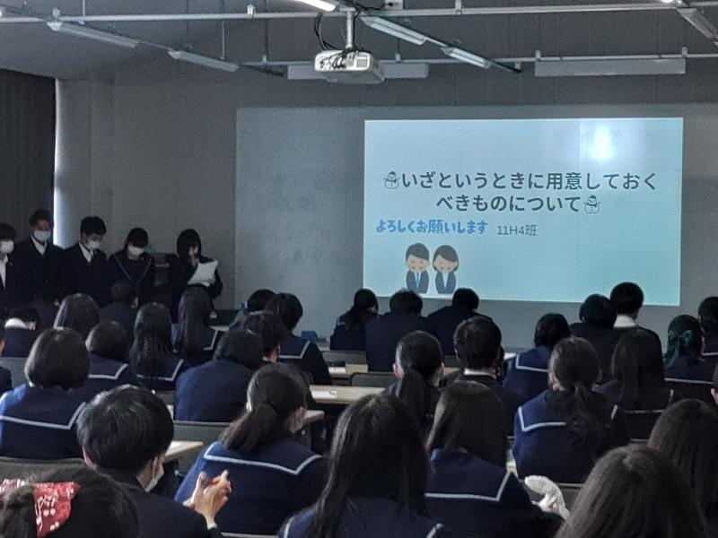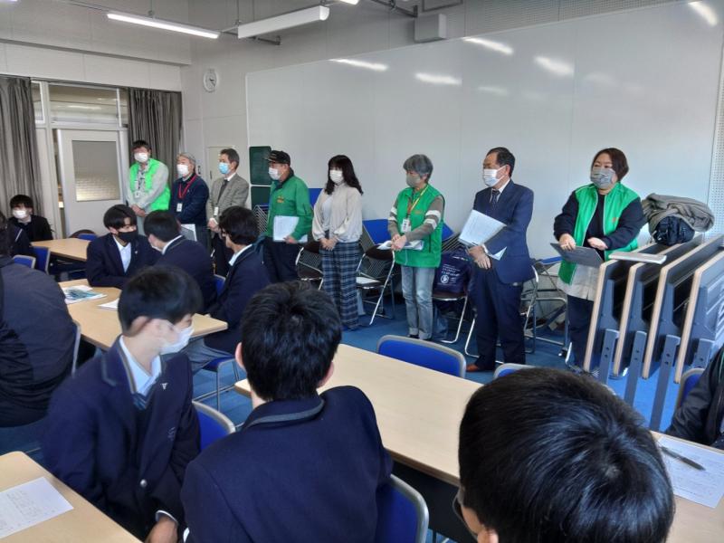 また、1年生の共通テーマ「防災・減災」の探究をお手伝いいただいた防災士の皆様にも発表を聴いていただきました。