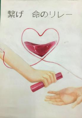 下に受賞作品を掲載しました。大井さんは夏休みに一生懸命この作品に取り組み、仕上げたそうです。献血は命のリレーであるということがとても素直に伝わってくる作品ですね。