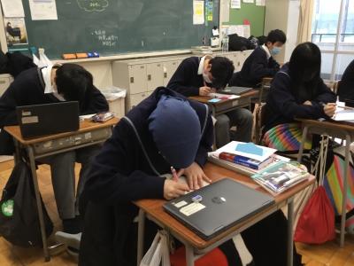 1月20日(金)放課後、1・2年生全員と3年生の希望者が校内で英語検定を受検しました。