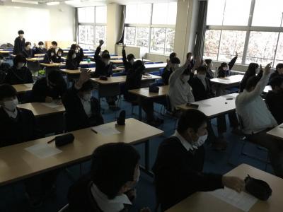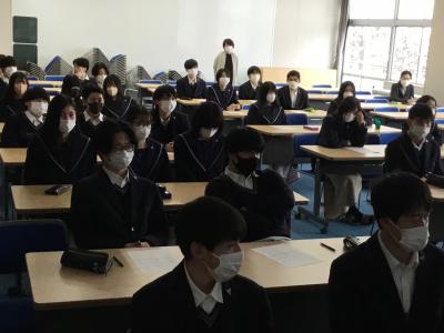 1月13日(金)4限目に、大学入学共通テスト受験生の激励会が行われました。