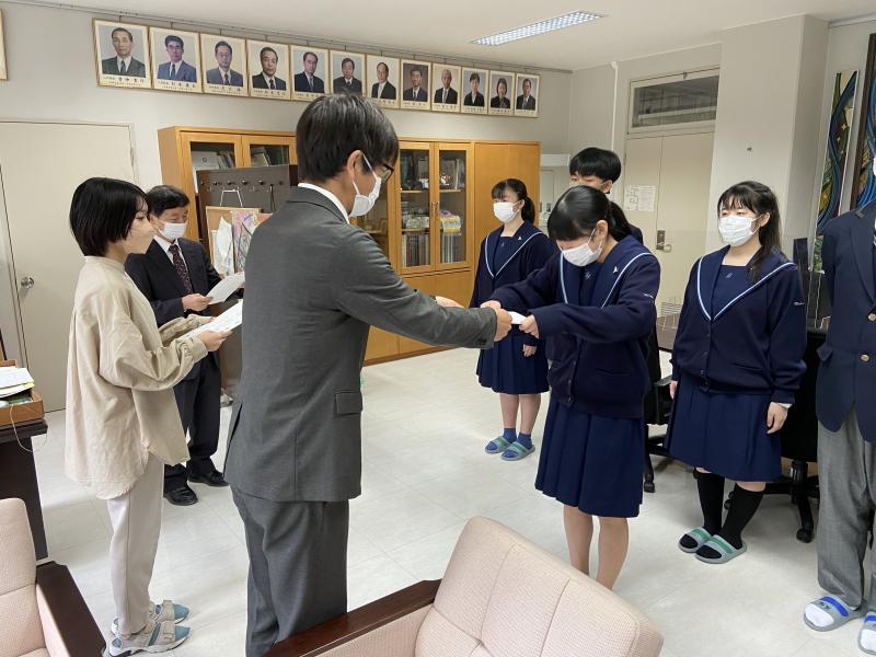 本日、令和4年度の後期生徒会役員の任命式が行われました。先日の選挙で選ばれた7名が後期に向けて、校長先生より任命状を授与されました。後期の役員は、黎明の作成や学校紹介動画の作成など沢山の仕事があります。執行委員や他の生徒たちと協力して、学校を盛り上げられるように尽力してください。
