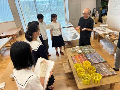 美術専攻1年生が金沢美大の次世代育成事業に参加してきました。日本画・油画・彫刻・デザインそれぞれの講座に分かれ、模擬授業を体験しました。普段扱ったことのない素材や技法に触れ、表現の楽しさを味わうとともに将来の進路について考える貴重な機会となりました。
