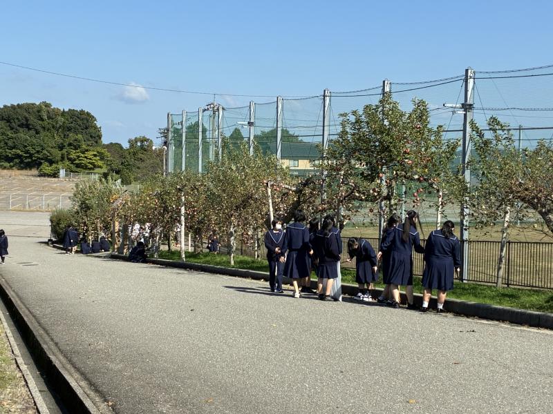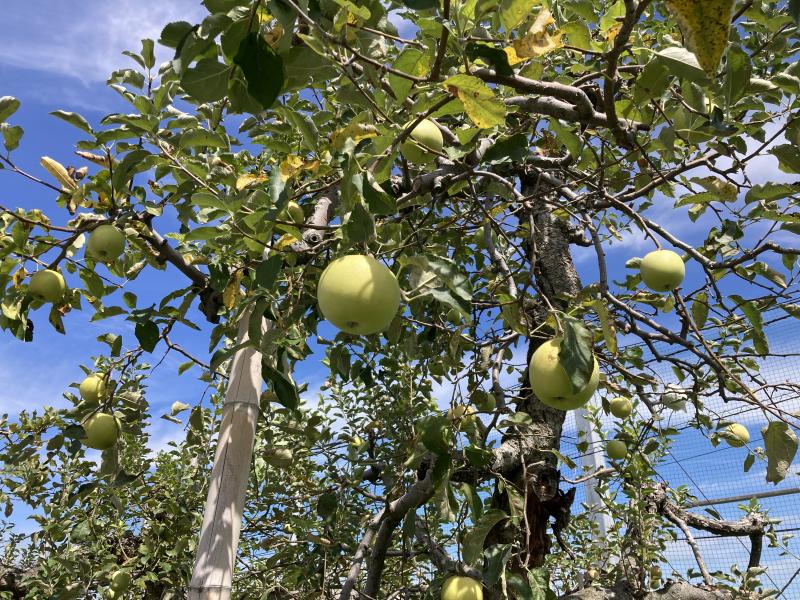 リンゴの実に被せられていた袋が取り払われました。ここから赤く熟すのを待ちます。美味しくなあれ!