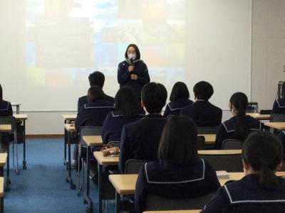 セミナーでは成人年齢引き下げによって起こりうる問題点やカードトラブルについて実例を踏まえて生徒参加型の講演をしていただきました。