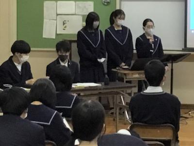1月18日(火)7限目に2年生「総合的な学習の時間」の学年発表がありました。「あったらいいな!」を学年テーマとし、「学校をよりよくするための方策」や「魅力ある学校にする方策」をそれぞれ考え、課題を設定し仮説を立て、情報収集や整理分析を行ってきました。どの発表も各々の角度から真剣に考え、探究している様子がわかる発表となりました。