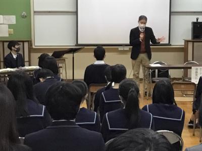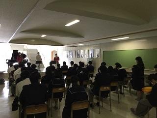 1月14日(金)の4限目に、明日とあさってに共通テストを受験する生徒の激励会がありました。教頭の赤尾先生、3年担任の竹内先生、田村先生、角井先生、音楽の別宗先生の順に激励の言葉がありました。その後に進路指導課長の野村先生から受験場での注意がありました。
