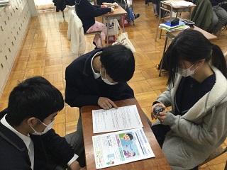 12月号を作成中の2年生保健委員