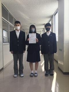 皆勤賞(代表生徒3年北川 美咲さん)