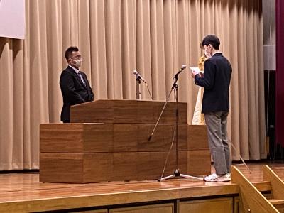 卒業卒業記念品贈呈式(3年西野 杏留さん)