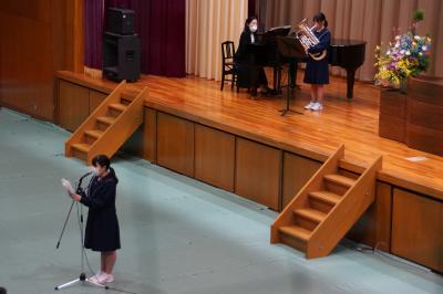 在校生代表送辞(伊藤絵里香)、ユーフォニアム演奏(渡辺美咲)