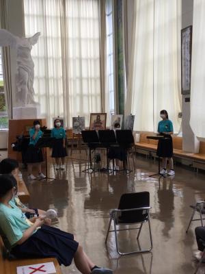 8月20日から補習が始まり、また28日の辰巳祭に向けて登校は始まっていましたが、本日31日、新たな学期がスタートしました。朝の特別清掃の後、リモートで表彰伝達式(ライフル射撃部、陸上競技部、合唱部)・始業式を実施しました。各学年とも2学期には様々な行事が予定されているので、感染対策に十分配慮しながらそれぞれの活動を通し、実りのある2学期としてほしいと校長先生からお話がありました。また、保健環境課の松生先生の説明により感染症拡大防止の留意点を再確認しました。