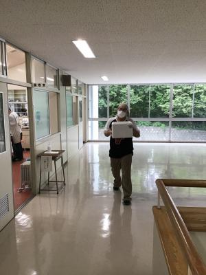 生徒玄関でのカメラによる体温測定