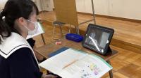 班ごとに防災士さんについていただきながら、通学路や周辺の公園や裏山などをじっくりと探索。日頃何気なく通っている道ですが、防災を意識した目線で見ると、思いがけないところに多くの危険個所が見つかりました。iPadで写真を撮りながら、状況を地図に記録したものを、防災士さんと意見を交換しながら整理しました。