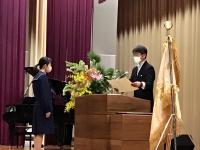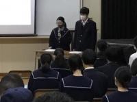3月1日(月)の午前、卒業に関係する諸式を新型コロナウイルス感染症対策のため簡素化して行いました。春蘭賞授与式では、部活動、生徒会活動、ボランティア活動、学業などにおいて校内外で優秀な業績や模範的な活動が認められた生徒20名に賞状とメダルが送られました。例年であれば学校長より一人一人に賞状とメダルが手渡しされるところ、今年度は代表生徒への授与としました。その後の皆勤賞受賞者、図書の多読者賞受賞者を紹介し、卒業記念品贈呈式、生徒会記念品贈呈式、同窓会入会式を短時間で実施しました。