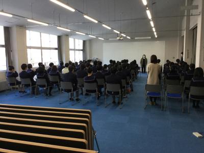 2月10日は三年生の最終登校日です。教室を綺麗にし、自分の荷物を片付け、学年集会でこの後の予定や今後の過ごし方についたのお話がありました。