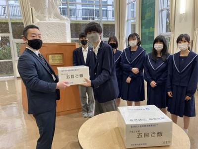 2月12日(金)に、金沢市から防災訓練で活用するα米(アルファー米)をいただきました。災害が起こった時に避難所等で適切に対応する方法を学ぶために、使わせていただきます。
