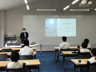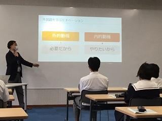 9月14日(月)7限に、本校アクティブラーニング教室で、北陸大学の福山先生による出前講座が行われ、2年生グローバルコースの生徒21名が5グループに分かれて講座を受けました。